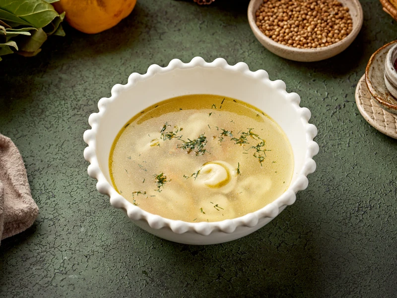 Наваристый куриный бульон с мини пельмешками